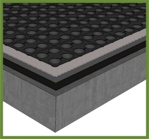 Membrana em PEAD, constituída por alvéolos micro-ranhurados no seu topo, com elevada resistência à compressibilidade e excelentes características de apoio à drenagem. Exerce dupla função: colecta, nos seus alvéolos, águas que alimentarão os sistemas radiculares e drena, eficazmente, todo o excesso de pluviosidade que se acumule, pelas ranhuras existentes.