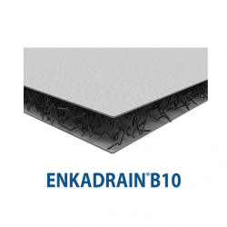 Enkadrain®B10 é um geocomposto leve e flexível, constituído por um núcleo de drenagem fabricado a partir de monofilamentos extrudidos em polipropileno (PP), entrelaçados e soldados onde estes se cruzam. Usufrui uma um elevado índice de vazios para obter uma elevada capacidade de drenagem. Possui também um geotêxtil não tecido em ambos os lados que funciona como filtro. Os componentes são ligados termicamente entre si ao longo de toda a área de contacto.