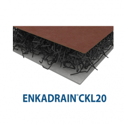 Enkadrain®CKL20 é um geocomposto multifuncional que possui um corpo formado por uma geomanta, produzida a partir de monofilamentos extrudidos em polipropileno (PP), entrelaçados e soldados onde estes se cruzam. Possui uma elevada resistência à compressão e um elevado índice de vazios. Num dos lados possui um geotêxtil não-tecido que funciona como filtro. No lado oposto, possui um revestimento em PP, com 0,6mm de espessura (impermeável ao betão). Enkadrain®CKL20 é ideal para aplicar como camada de drenagem em poços e túneis ao mesmo tempo que atenuam o ruído. Permitem que a betonagem seja realizada sem perda de espaço em muros de Berlim, paredes moldadas, ou em rocha (cofragem perdida).